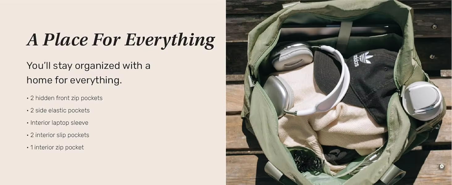 Spacious & Organized Interior: Delight in the abundance of storage space with a protective laptop compartment, two easily accessible exterior zip pockets, and handy interior pockets. Every item has its place, ensuring your belongings are neatly stored and within reach, providing ease and efficiency during travel.