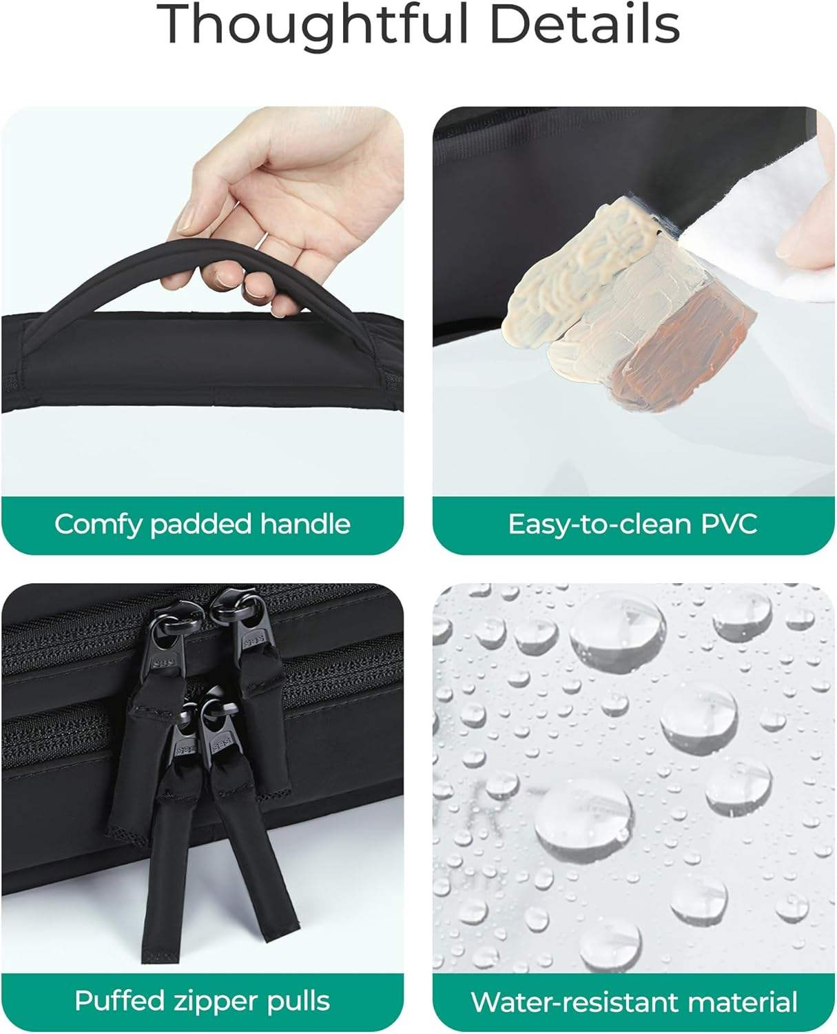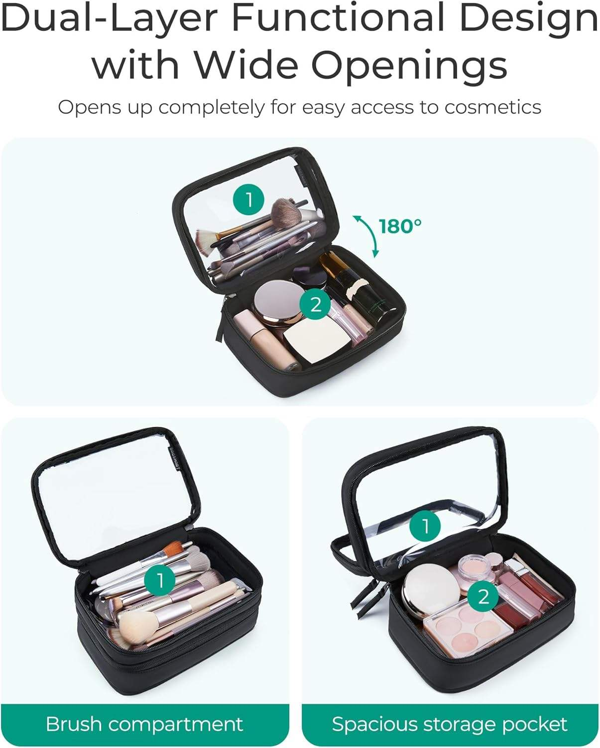 • Wide Opening for Easy Access: The durable dual zippers allow the bag to open a full 180 degrees, the clear PVC panel and wide opening make it quick and convenient to grab what you need without having to rummage